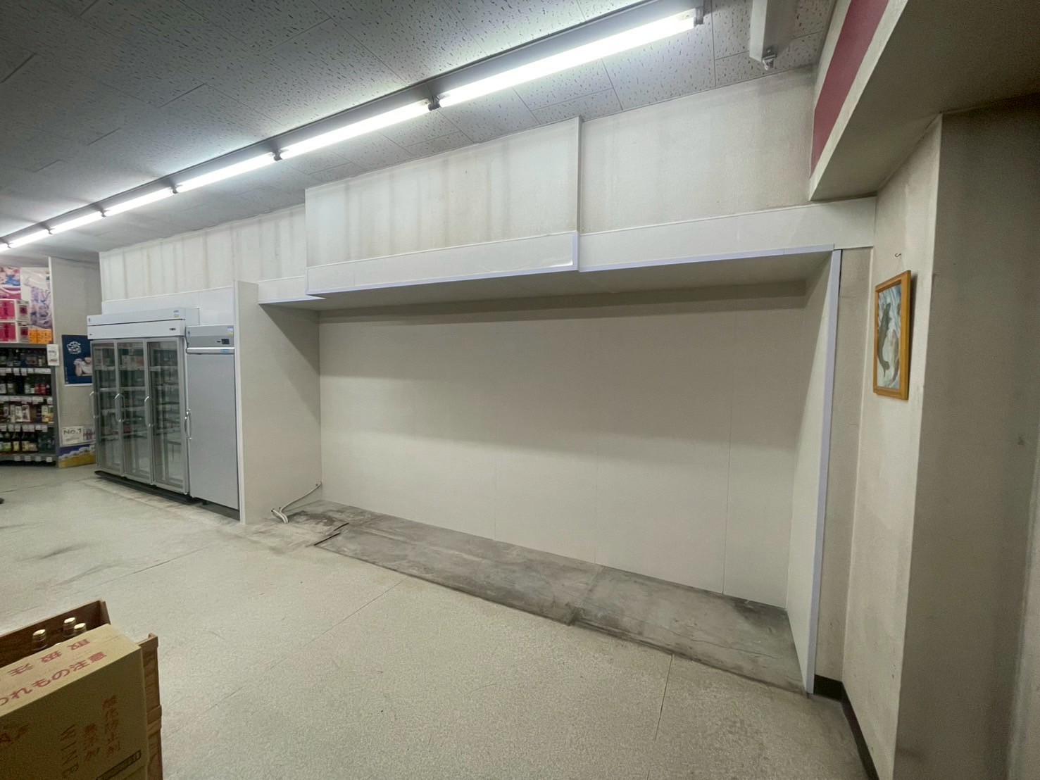 冷蔵ケースの入れ替えに伴う壁の増設工事を主に施工させていただきました。